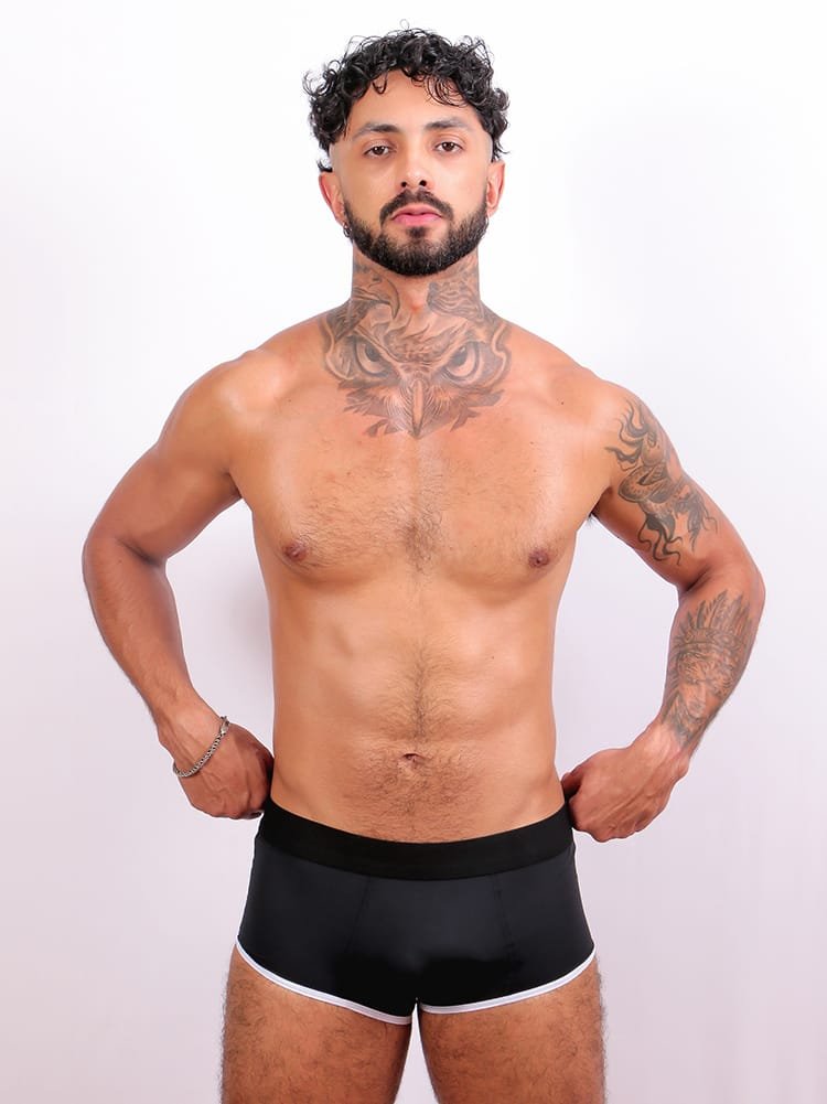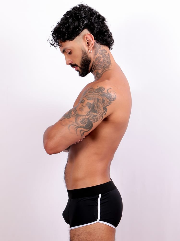 Cueca Small Boxer traz o melhor de três mundos para o seu dia a dia! Com um design mais curto que as tradicionais boxers, ela oferece a mobilidade de uma slip e o conforto ajustado de uma sunga. Confeccionada em malha premium de poliamida com elastano, essa peça proporciona um toque macio e elástico, modelando-se perfeitamente ao corpo.